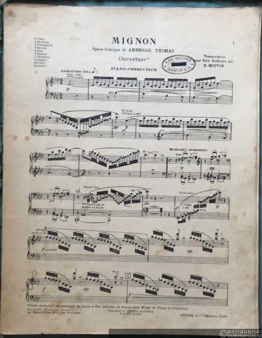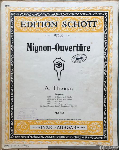 Mignon-Ouvertüre (= Edition Schott, No. 07506, Einzel-Ausgabe) / Mignon. Opera-comique de Ambroise Thomas. Ouverture. Salonorchester. Piano [Klavierauszug] u. 13 Stimmen.