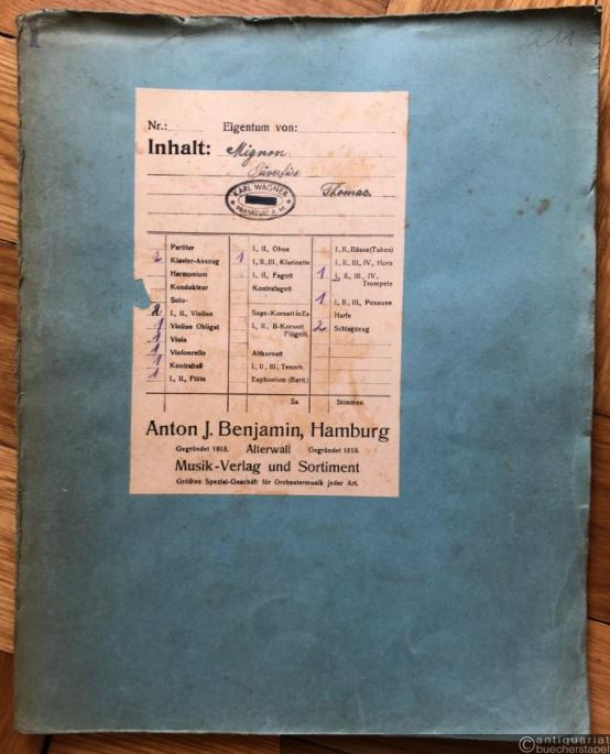 Mignon-Ouvertüre (= Edition Schott, No. 07506, Einzel-Ausgabe) / Mignon. Opera-comique de Ambroise Thomas. Ouverture. Salonorchester. Piano [Klavierauszug] u. 13 Stimmen.