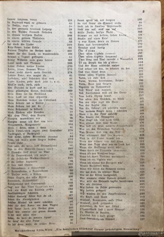 Liederquell. 252 Volks-, Vaterlands-, Soldaten-, Jäger- u. Commerslieder, berühmte klassische, moderne und geistliche Gesänge für eine mittlere Stimme mit leichter Pianofortebegleitung.