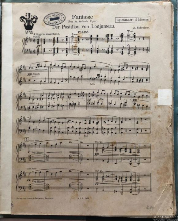 Fantasie über A. Adam's Oper: Der Postillon von Lonjumeau (= Lyra No. 119). Salonorchester. 13 Stimmen.