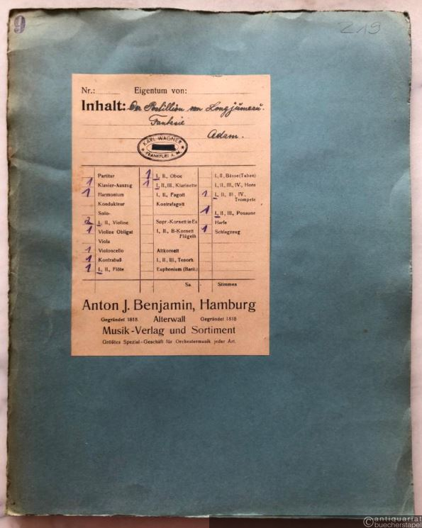 Fantasie über A. Adam's Oper: Der Postillon von Lonjumeau (= Lyra No. 119). Salonorchester. 13 Stimmen.