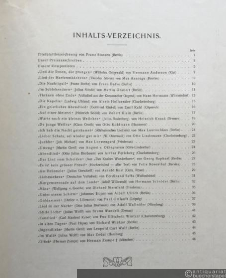 Im Volkston. 3. Sammlung. Dreißig moderne Preislieder komponiert für Die Woche, 1904 (= 6. Sonderheft der "Woche").