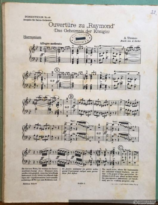 Ouverture zu "Raymond" (Das Geheimnis der Königin) (= Domesticum. Sammlung echter Ensemblemusik, No. 49). Salonorchester. 12 Stimmen.