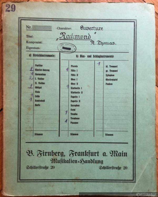 Ouverture zu "Raymond" (Das Geheimnis der Königin) (= Domesticum. Sammlung echter Ensemblemusik, No. 49). Salonorchester. 12 Stimmen.