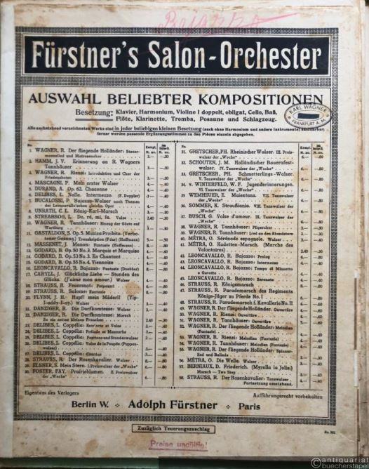 Fantasie aus: Der Bajazzo - Pagliacci von R. Leoncavallo (= Fürstner's Salon-Orchester. Auswahl beliebter Kompositionen). Salonorchester. 13 Stimmen.