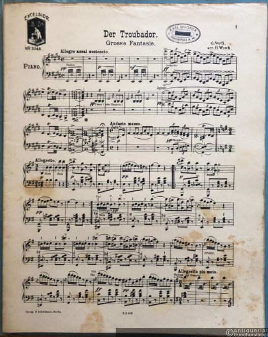 Der Troubador. Grosse Fantasie (= Excelsior. Sammlung berühmter und beliebter Werke für Konzert, Tanz und Kino, No. 2048). Salonorchester. 13 Stimmen.