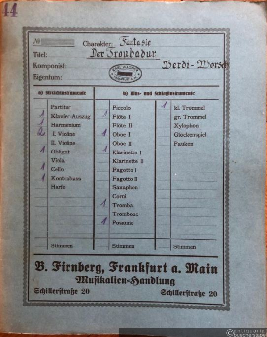 Der Troubador. Grosse Fantasie (= Excelsior. Sammlung berühmter und beliebter Werke für Konzert, Tanz und Kino, No. 2048). Salonorchester. 13 Stimmen.