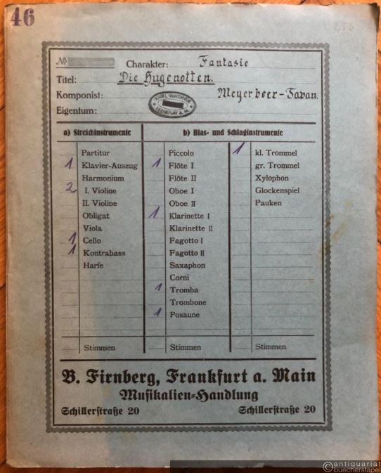 Fantaisie sur Les Huguenots, opera de G. Meyerbeer. Salonorchester. 10 Stimmen.