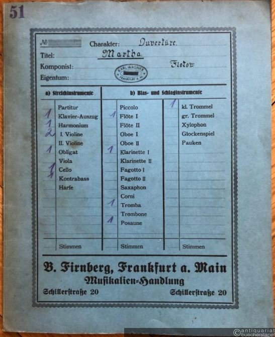 Ouverture zur Oper: Martha (= Lyra No. 2550). Salonorchester. 12 Stimmen.