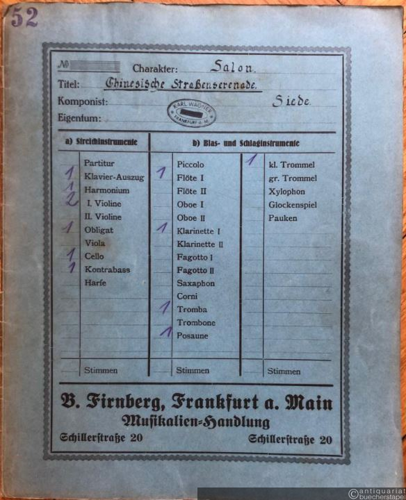 Chinesische Straßenserenade. Charakterstück. Salonorchester. 12 Stimmen.