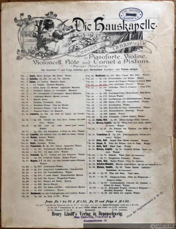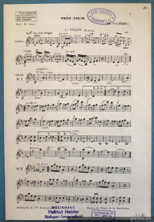 Tres-jolie (Ganz allerliebst), Op. 159. Valse / Walzer (= Die Hauskapelle. Concert- und Tanzmusik für Pianoforte, Violine, Violoncell, Flöte und Cornet à Pistons (Pariser Besetzung), No. 42). Salonorchester. 13 Stimmen.