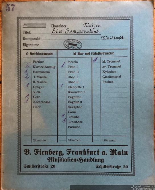 Ein Sommerabend (Soiree d'Ete), Op. 188. Valse / Walzer (= Die Hauskapelle. Concert- und Tanzmusik für Pianoforte, Violine, Violoncell, Flöte und Cornet à Pistons (Pariser Besetzung), No. 47). Salonorchester. 13 Stimmen.