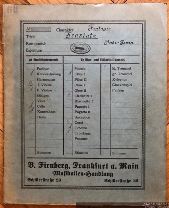 Fantaisie sur La Traviata, opera de G. Verdi. Salonorchester. 12 + 1 Stimmen.