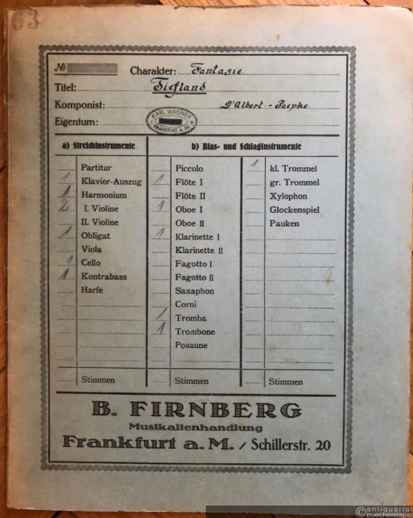 Große Fantasie aus der Oper: Tiefland (= Walhalla Nr. 73). Salonorchester. 13 Stimmen.