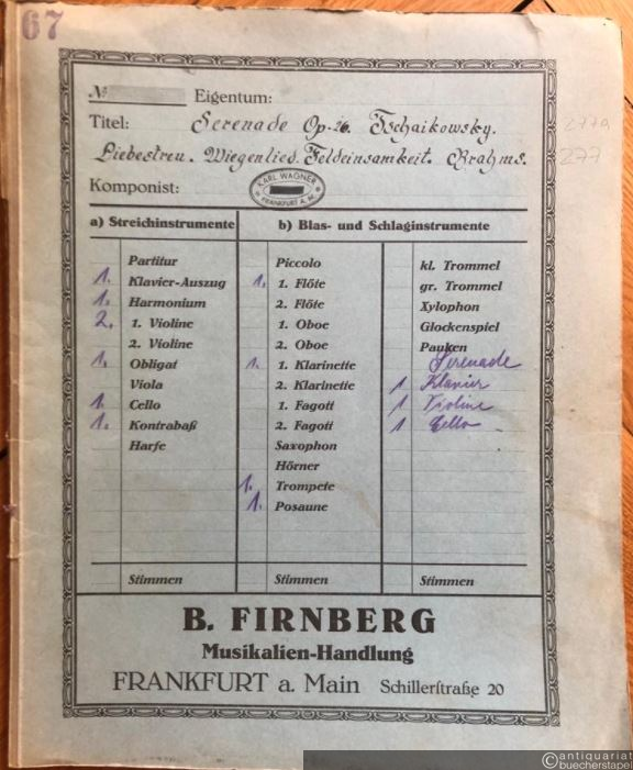 Drei Lieder von Johannes Brahms: 1. Liebestreu, Op. 3 No. 1 / 2. Wiegenlied, Op. 49 No. 4 / 3. Feldeinsamkeit, Op. 86 No. 2. Ausgabe für Salonorchester. 11 Stimmen.