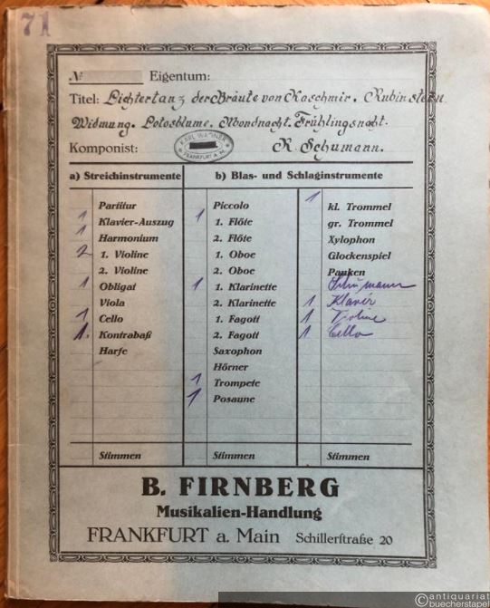 Lichtertanz der Bräute von Kaschmir aus der Oper Feramors. Salonorchester. 12 Stimmen.