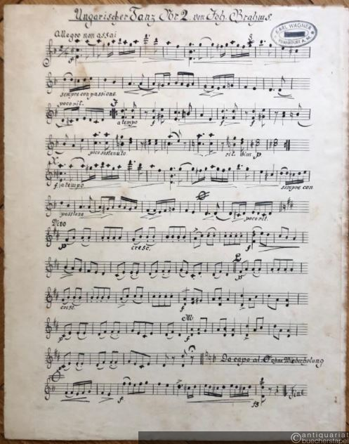 Ungarischer Tanz d-Moll (= Ungarische Tänze von Johannes Brahms für Pianoforte, Violine und Violoncell, No. 2). [Klaviertrio] 3 Stimmen.