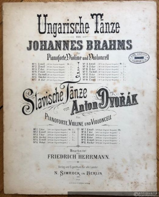 Ungarischer Tanz d-Moll (= Ungarische Tänze von Johannes Brahms für Pianoforte, Violine und Violoncell, No. 2). [Klaviertrio] 3 Stimmen.