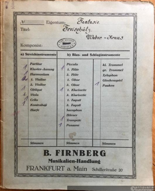 Fantasie aus Weber's Oper: Der Freischütz (= Edition Roehr Nr. 498). Salonorchester. 14 Stimmen.