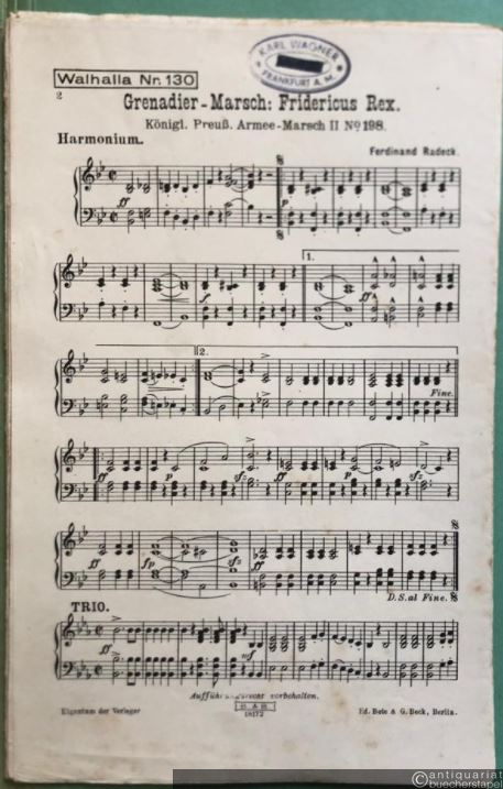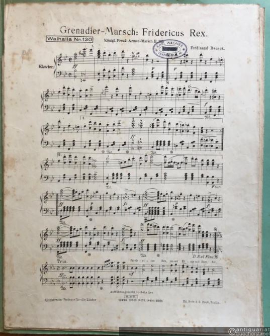 Grenadier-Marsch: Fridericus Rex. Königl. Preuß. Armee-Marsch No. 2, 198 (= Walhalla Nr. 130). Salonorchester. 14 Stimmen.