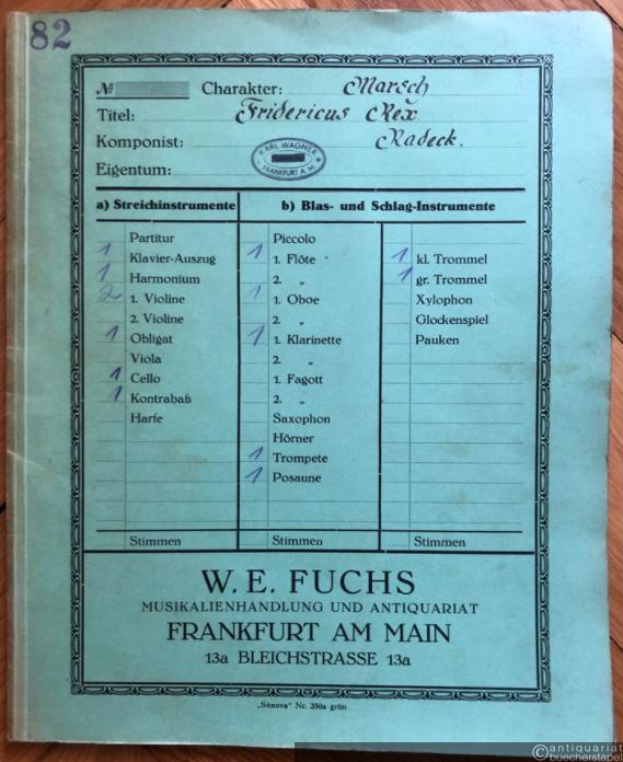 Grenadier-Marsch: Fridericus Rex. Königl. Preuß. Armee-Marsch No. 2, 198 (= Walhalla Nr. 130). Salonorchester. 14 Stimmen.
