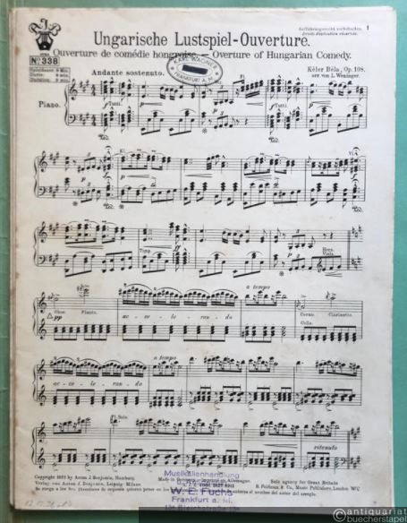 Ungarische Lustspiel-Ouverture, Op. 108 / Ouverture de comedie hongroise / Ouverture of hungarian comedy (= Lyra No. 338). Salonorchester. 13 Stimmen.