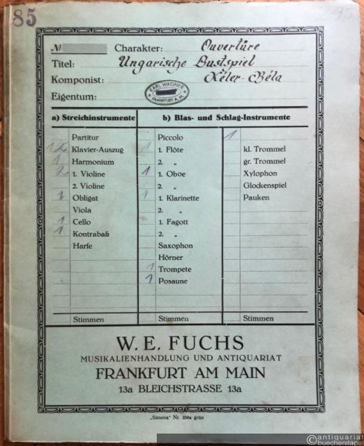 Ungarische Lustspiel-Ouverture, Op. 108 / Ouverture de comedie hongroise / Ouverture of hungarian comedy (= Lyra No. 338). Salonorchester. 13 Stimmen.