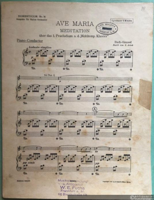 Ave Maria. Meditation über das 1. Praeludium a. d. "Wohltemp. Klavier" (= Domesticum No. 36). Salonorchester. 14 Stimmen.