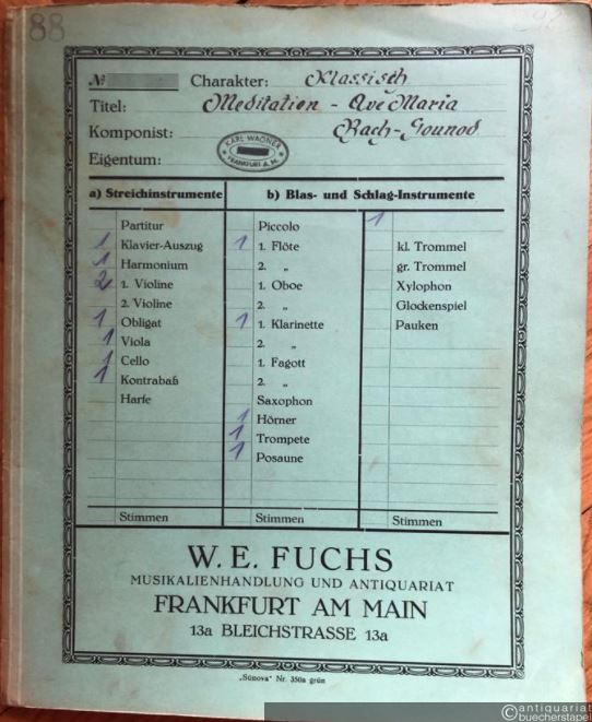 Ave Maria. Meditation über das 1. Praeludium a. d. "Wohltemp. Klavier" (= Domesticum No. 36). Salonorchester. 14 Stimmen.