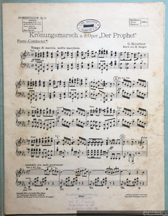 Krönungsmarsch aus der Oper: Der Prophet (= Domesticum. Sammlung künstlerischer Ensemblemusik, No. 31). Salonorchester. 13 Stimmen.