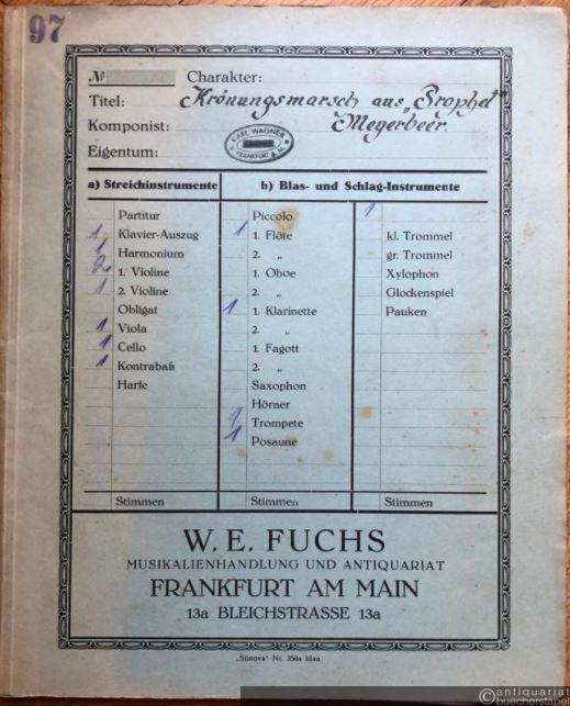 Krönungsmarsch aus der Oper: Der Prophet (= Domesticum. Sammlung künstlerischer Ensemblemusik, No. 31). Salonorchester. 13 Stimmen.