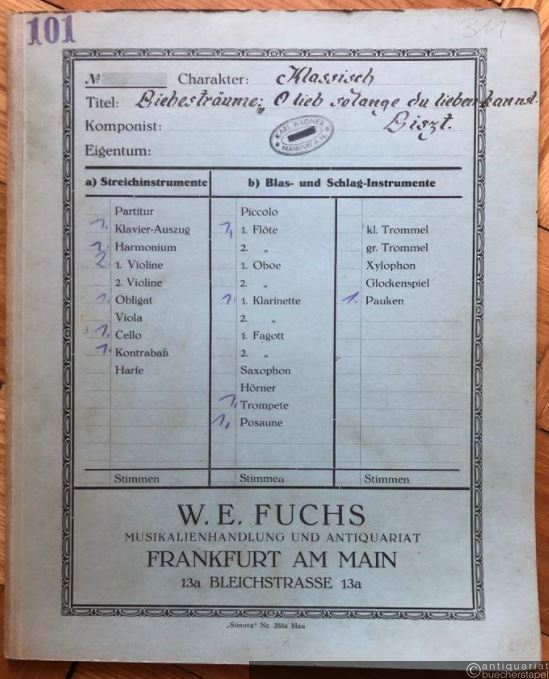 Notturno No. 3 aus: Liebesträume [O lieb' solange du lieben kannst] (= Kosmos No. 253). Salonorchester. 12 Stimmen.