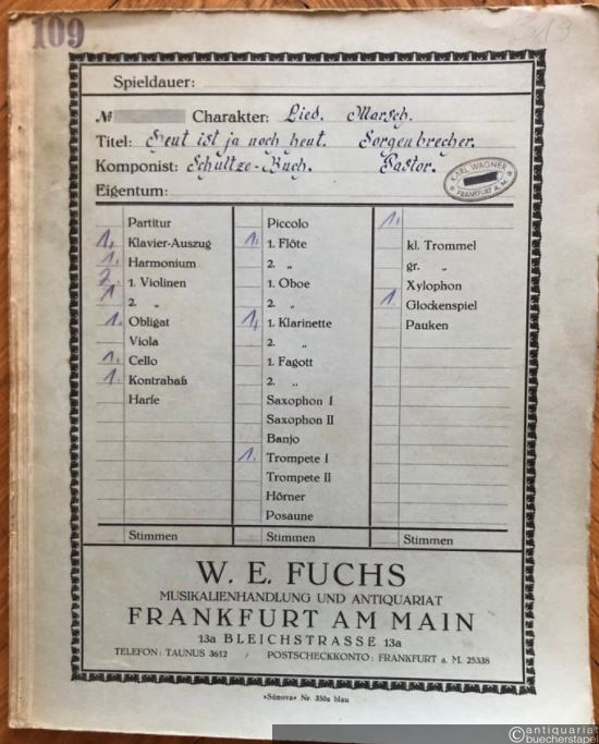 Heut ist ja noch heut, Op. 6. Salonorchester. Mittel-Ausgabe. 13 Stimmen. / Sorgenbrecher. Marschlied, Op. 60. 13 Stimmen