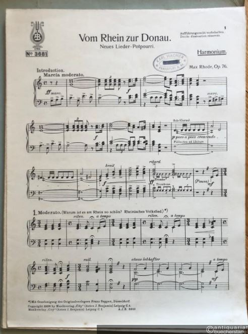 Vom Rhein zur Donau, Op. 76. Neuestes Lieder-Potpourri (= Lyra No. 3681). Salonorchester. 15 Stimmen.