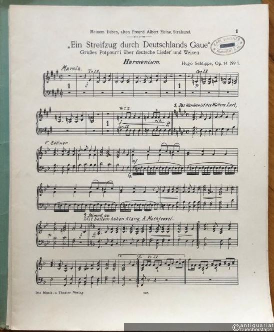 Ein Streifzug durch Deutschlands Gaue, Op. 14 No. 1. Großes Potpourri über deutsche Lieder und Weisen (= Edition Iris). Salonorchester. 13 Stimmen.