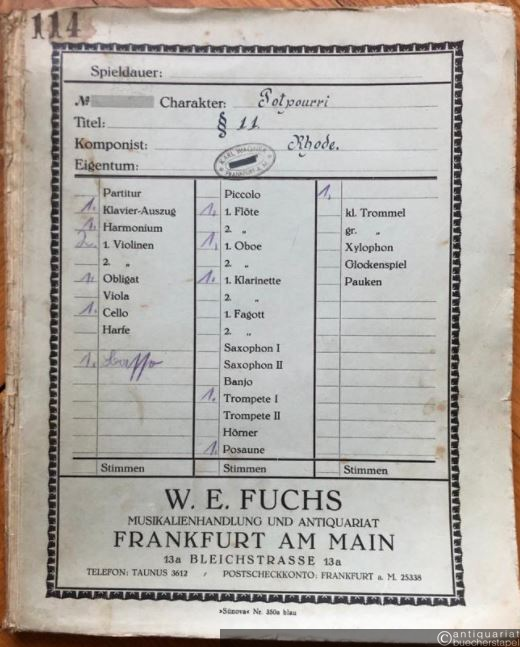 § 11, Op. 77. Lustiges Trinklieder-Potpourri (= Lyra No. 3702). Salonorchester. 13 Stimmen.