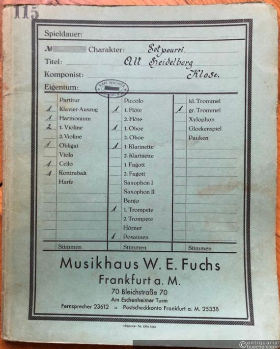 Alt-Heidelberg, Op. 132. Ein neues Studentenlieder-Potpourri (= Der Salon-Kapellmeister, No. 79). Salonorchester. 13 Stimmen.