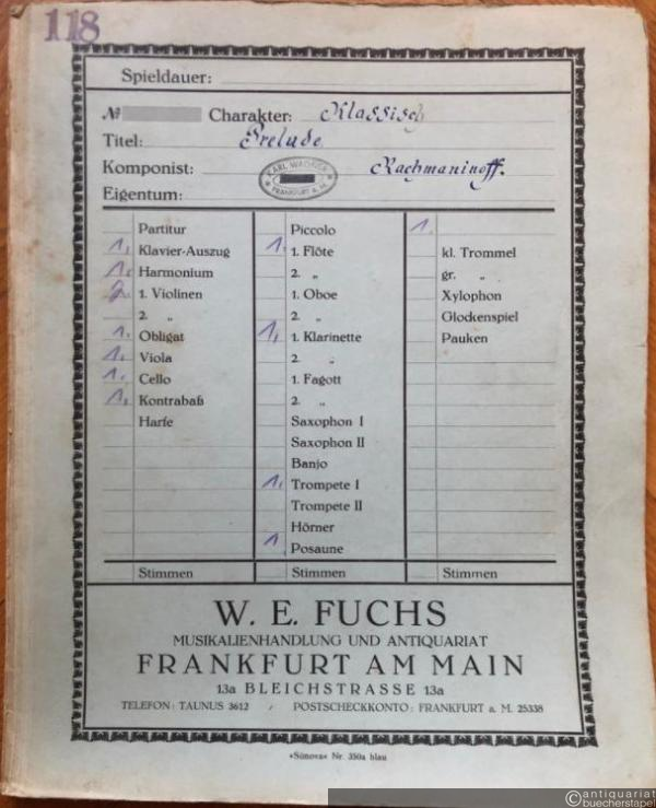 Prelude, Op. 3 No. 2 (= Domesticum. Sammlung künstlerischer Ensemblemusik, No. 240). Salonorchester. 13 Stimmen.