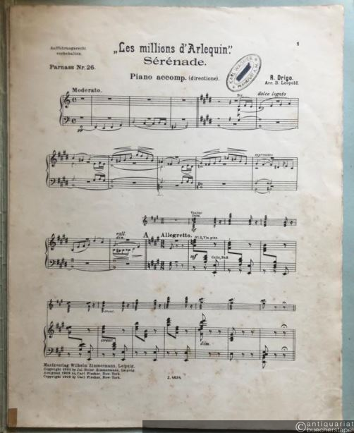 Les millions d'Arlequin. Serenade (= Parnass. [Sammlung ausgewählter Originalwerke und Phantasien], No. 26). Salonorchester. 10 Stimmen.