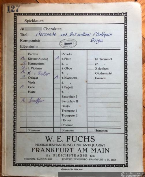Les millions d'Arlequin. Serenade (= Parnass. [Sammlung ausgewählter Originalwerke und Phantasien], No. 26). Salonorchester. 10 Stimmen.