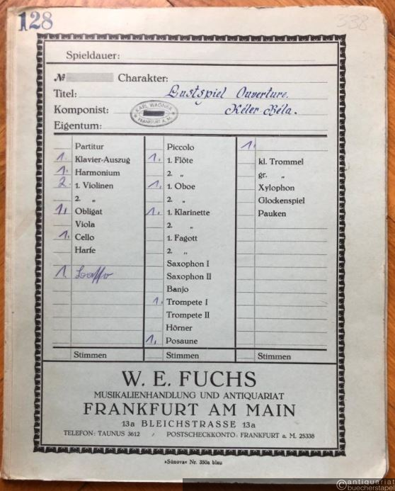 Lustspiel-Ouverture, Op. 73 / Ouverture comique / Comedy-Ouverture (= Lyra Nr. 336). Salonorchester. 13 Stimmen.