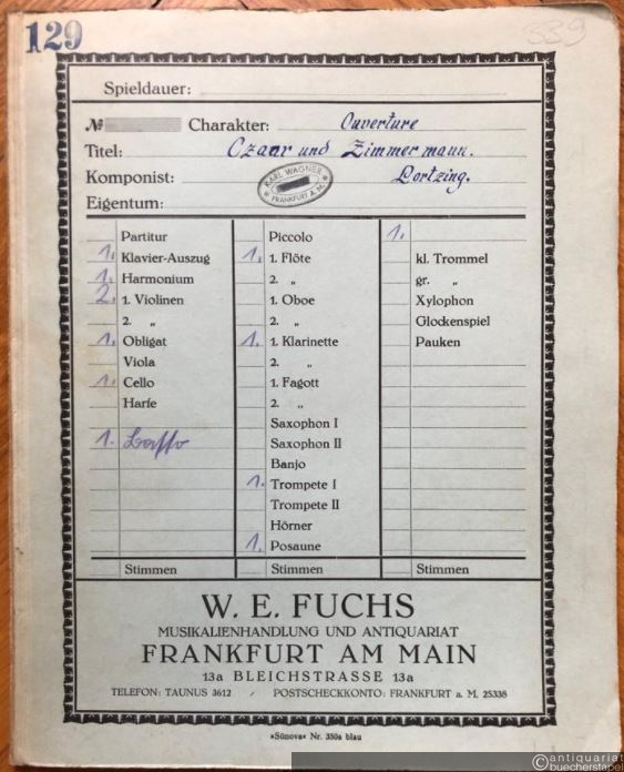 Ouverture: Czaar und Zimmermann / Czar et Charpentier / Czar and Carpenter (= Lyra Nr. 2894). Salonorchester. 12 Stimmen.
