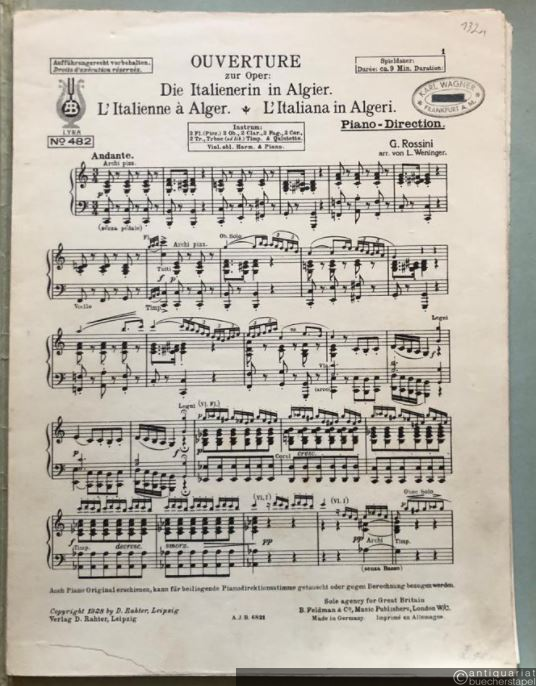 Ouverture zur Oper: Die Italienerin in Algier / L'italienne a Alger / L'italiana in Algeri (= Lyra No. 482). Salonorchester. 13 Stimmen.