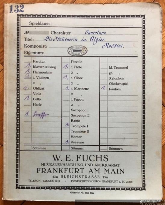 Ouverture zur Oper: Die Italienerin in Algier / L'italienne a Alger / L'italiana in Algeri (= Lyra No. 482). Salonorchester. 13 Stimmen.