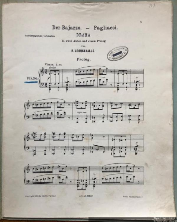 Der Bajazzo. Pagliacci. Drama in zwei Akten und einem Prolog. Prolog (= Fürstner's Salon-Orchester. Auswahl beliebter Kompositionen, No. 88). Salonorchester. 13 Stimmen.