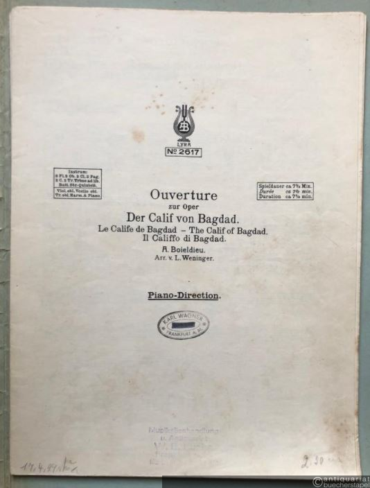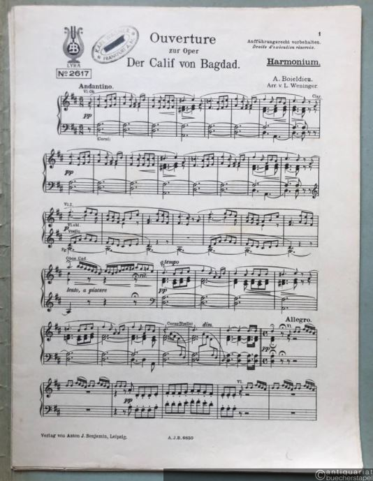 Ouverture zur Oper: Der Calif von Bagdad / Le Calife de Bagdad / The Calif of Bagdad (= Lyra No. 2617). Salonorchester. 13 Stimmen.