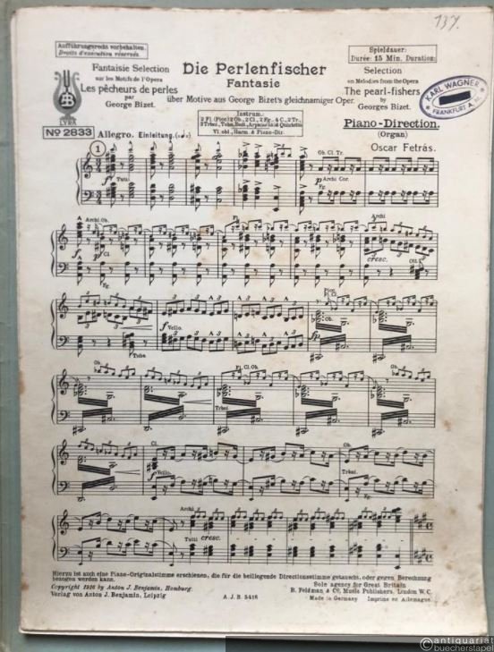 Die Perlenfischer. Fantasie über Motive aus George Bizet's gleichnamiger Oper (= Lyra No. 2833). Salonorchester. 13 Stimmen.
