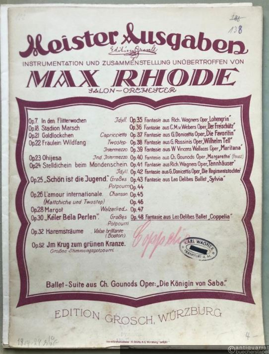 Fantasie aus Leo Delibes Ballet "Coppelia", Op. 48 (= Meister-Ausgaben. Edition Grosch). Salonorchester. 12 Stimmen.