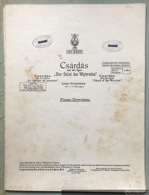 Csardas aus der Oper: Der Geist des Wojwoden / Le spectre du guerrier / Ghost of the warrior (= Lyra No. 3336). Salonorchester. 13 Stimmen.