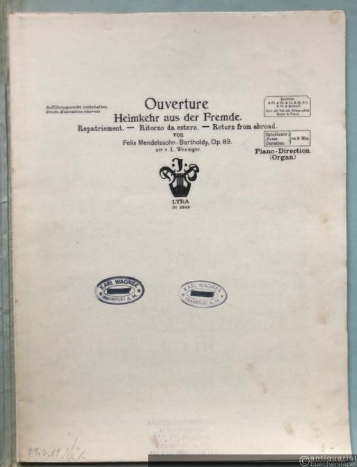 Ouverture: Heimkehr aus der Fremde, Op. 89 / Repatriement / Return from abroad (= Lyra No. 2946). Salonorchester. 13 Stimmen.